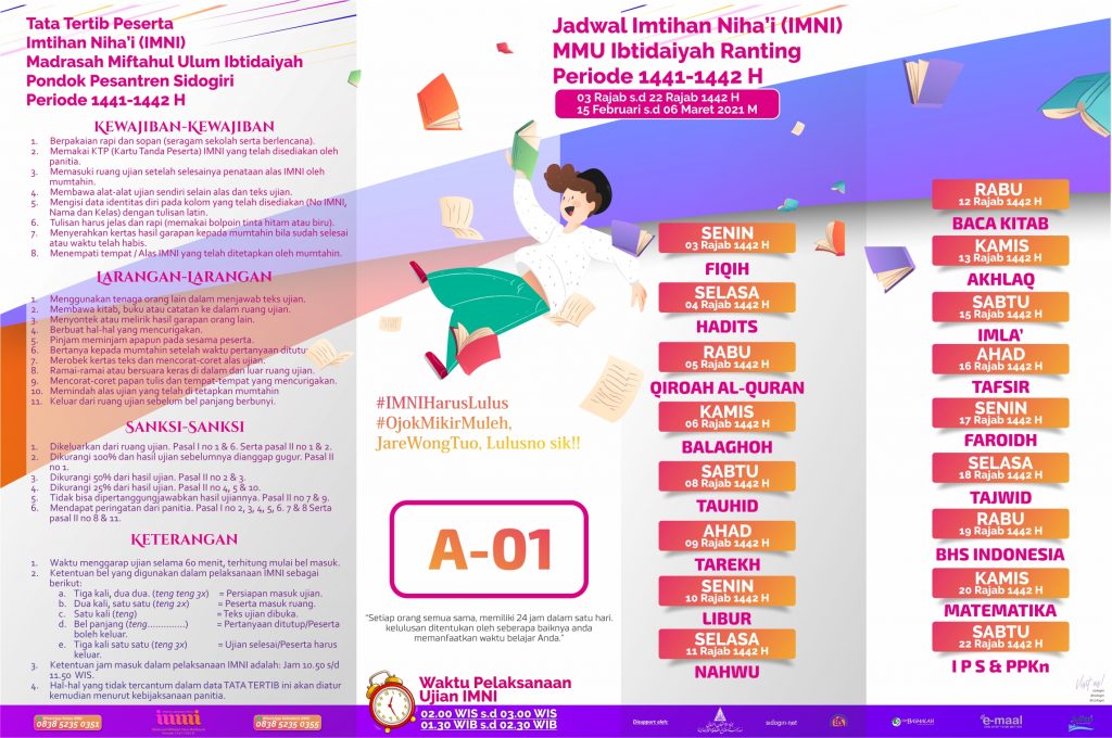 Jadwal Imtihan Niha’i (IMNI) MMU Ibtidaiyah Ranting periode 1441-1442 H.