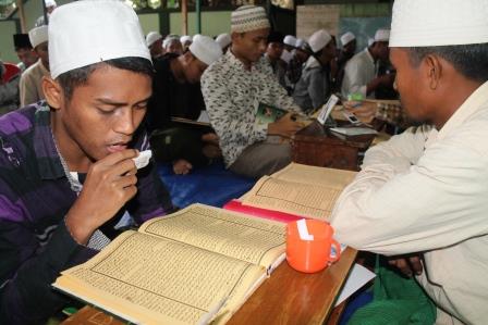 Terlihat Peserta Ujian baca Kitab Sedang Memperagakan Praktek Baca Kitab di depan Mumtahin (Juri).